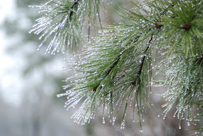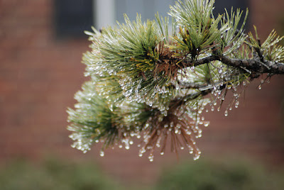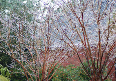 在冷冷寒風,冰凍細雨中 尋找另類美景和生活樂趣 周五白天陰陰雨雨的,到了晚間,氣温驟降,因此仍掛在樹稍的所有雨滴和濕氣,瞬間都凝結成了冰珠或冰柱。在這難得下雪結冰的北美南方城镇,這種美景頓時吸引了我 (經常被暴雪困擾的北方人,肯定笑我是土包子吧~~)。正逢周末假日,可以悠閑地去賞此特殊景象,捕捉美景。 有些樹上的小冰珠,在陽光下閃閃發亮,好像樹上仍缀滿了聖誕燈。 另外還看到好些鳥兒,趁著清晨雨小些時,開始出來覓食,好不熱閙。 希望你和我一樣,也喜歡厨房以外的美景...